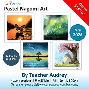 Basic Pastel Nagomi Art - Audrey Ng 365 Weekly Pastel Nagomi Art Zoom Workshop Join me for an inspiring journey through art and mindfulness, inspired by my daily painting series, Audrey Ng 365! This weekly online workshop is your chance to explore the gentle and expressive world of Pastel Nagomi Art, using selected artworks from my 365-day collection as our guide. What to Expect * Each session features a unique artwork from the Audrey Ng 365 series * Step-by-step guidance suitable for all levels – no prior experience needed * Gentle, calming techniques to help you relax and reconnect * Learn how to create soft, soulful pastel art in the comfort of your home * A supportive and friendly community of like-minded art lovers Format * Weekly sessions on Zoom (live, interactive, and recorded for replay) Whether you're a beginner or looking to deepen your pastel practice, this is a space to slow down, express yourself, and find joy in simple, beautiful moments. Let art be your weekly retreat – I’d love to create with you! Follow me on www.Instagram.com/audreyng365 to see the daily series Who can join? Above 12 years of age Younger children will need their parents' supervision. *There will be a recording. Recordings will be available for 3 months. Items required are as shown below: - Soft Pastel - Basic Stencil - Art Eraser (Soft Kneaded Eraser) - Pencil Eraser - Pen Eraser - Art Knife - 15x15cm 165 gsm paper or thicker - Recycle paper and scissors - Cotton buds - Charcoal pencils (Soft, Neutral, Hard) - Colour pencils - White Gelly Roll pen *** - Masking tape (optional) - Fixative Spray (optional) - Pastel pencils (optional) Join Art Peace Club on Facebook or sign up as a member on this website (www.artpeacesg.com) to get the Coupon Code for the member's price! Thank You!